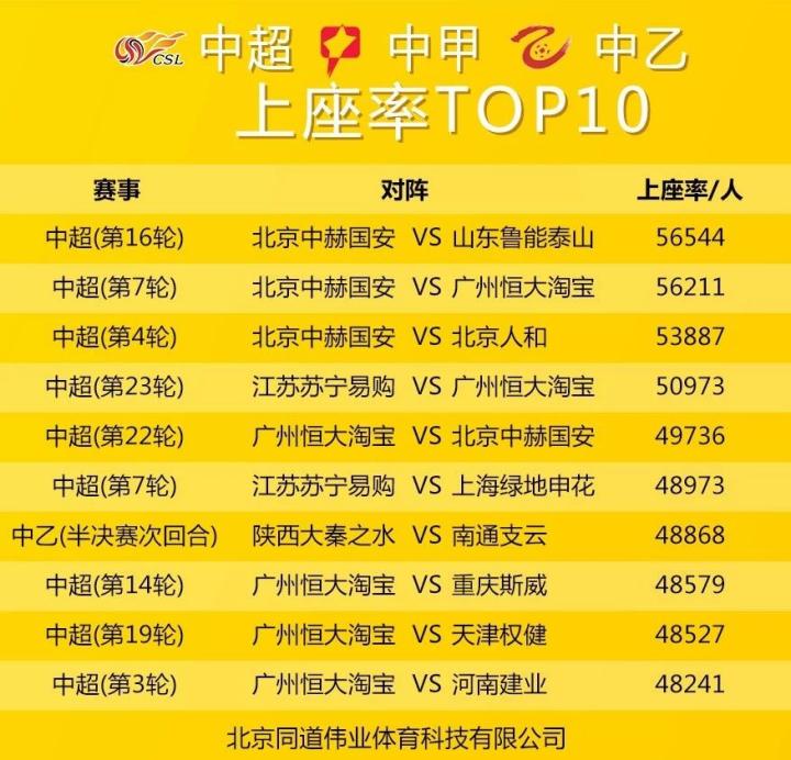 三级联赛(中超、中甲、中乙)上座率TOP10:
