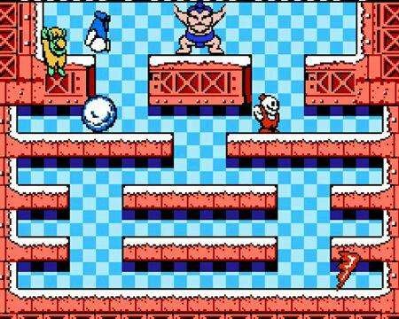 雪人兄弟算不上什么大游戏,但却很经典。目的是英雄救美女,每关分为10个场景,用堆雪球的方式来攻击,有BOSS战,还可以吃东西来增加自己的实力,可以双人协力过关。
