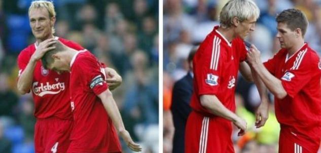 初出茅庐时,他踢得是后腰;直到利物浦中场多了哈曼、里瑟、博格、墨菲这样的狠角色,杰拉德才跑到边路磨砺自我,习得一脚优良传中球。渐渐的,利物浦有了西索科、马斯切拉诺这样的中路屏障,但缺少调度者,杰拉德就又跑到中路担任指挥官;再后来,球队有了阿隆索,杰拉德再次改行,开始打前腰和托雷斯一起冲锋陷阵。