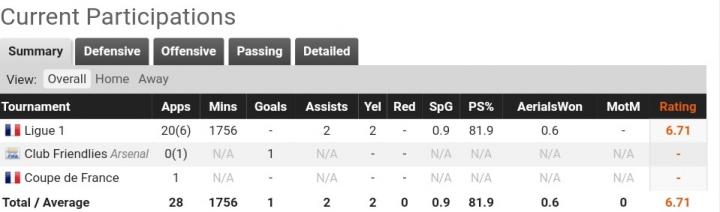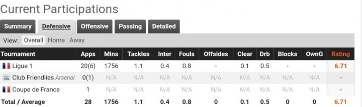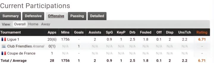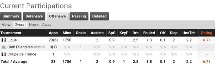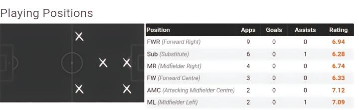 在对摩纳哥的首秀里,短短18分钟他就有2次过人成功。而之后对里尔的比赛里他更是发挥不俗,帮助球队战胜直接保级对手。最让人惊叹的是在对阵波尔多的比赛里,首发打满全场的他贡献令人惊叹的11次过人,还有4次抢断和2次空中对抗。赛季结束之后,出场10次的他首发7次,拿到数次全场最佳,凭借出色的发挥帮助球队保级成功。