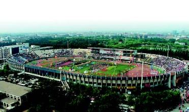 (图)滨海队主场毗邻成吉思汗大街,揭牌仪式上球队与高峰、范志毅、马明宇和宿茂臻等明星领衔的国家队战成4-4,点球3-1胜出