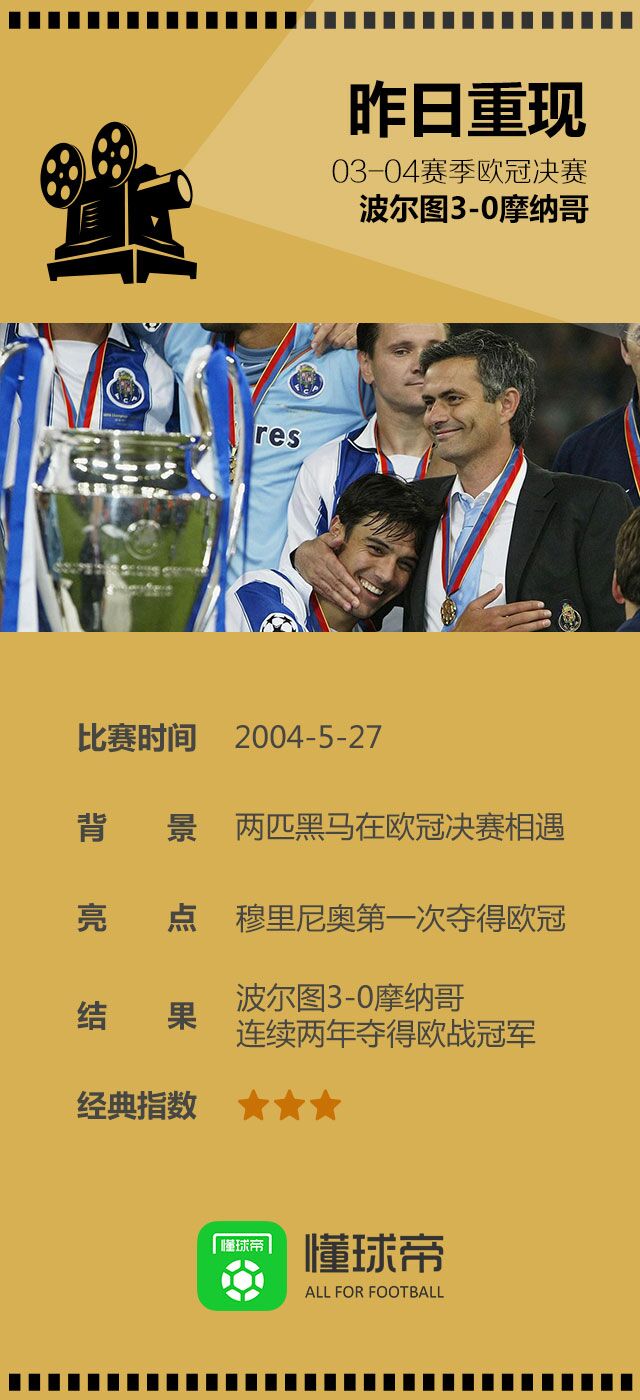昨日重现:03-04赛季欧冠决赛,波尔图3-0摩纳哥