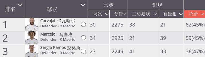 (图)上赛季,卡瓦哈尔的抢断次数是皇马防守球员中最多的