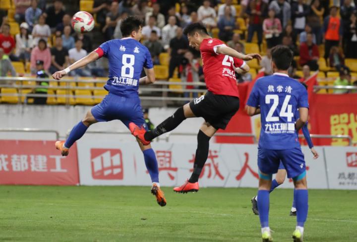 易边再战,第52分钟,成都兴城获得角球,甘锐主罚,曹添堡头球打中立柱。