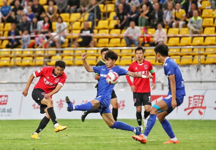 第23分钟,甘锐和胡明天在左路打出精彩配合,最后由甘锐完成一脚远射,被对方门将奋力扑出。