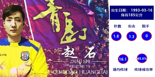 眼下只有26岁的赵石很有冲劲和活力,他在比赛中出击非常果断和勇敢,踢球有气势、比赛气质好。对于青岛黄海这样注重进攻的队伍,他的冒险出击也减轻了防守的压力。尽管本赛季数据比上赛季有所下降,不过这更多是球队实力提升所导致。总体来说,赵石的脚下能力不算出色,在青岛黄海的踢法下略有瑕疵。