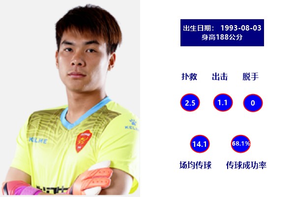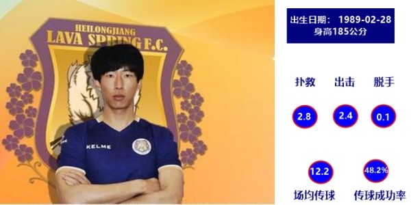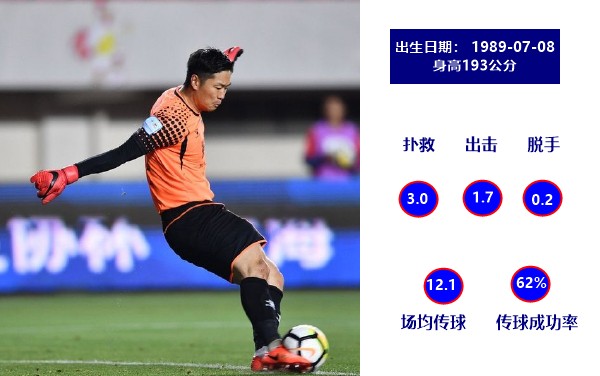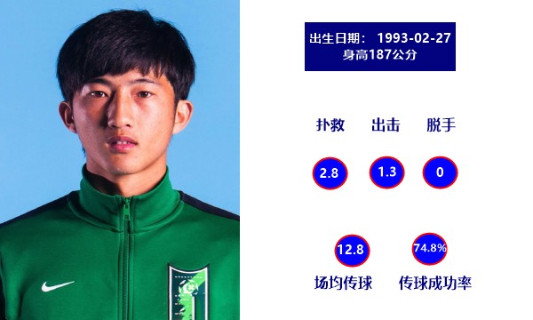 作为门将,身高193公分的国威在球门线上反应敏捷,技术出众。与此同时,29岁(上赛季28岁)的他,拥有丰富的比赛经验。上赛季中甲联赛中,场均3次扑救、1.7次出击,只有0.2次脱手的数据也是相当不错。