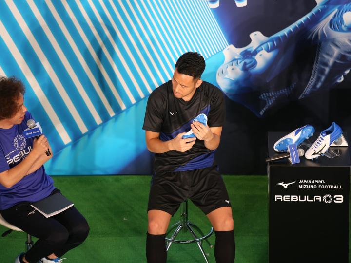随着两位球星来到活动现场,发布会也正式开始。手持全新Mizuno Rebula 3 JAPAN足球鞋的两位球员分别表达了自己拿到并穿着这双新战靴后的感受。作为美津浓Rebula阵营中的“老将”,吉田麻也认为新战靴柔软的大底能够实现最大限度地弯曲,从而帮助球员在急停急转中拥有更快的速度。“美津浓从众多消费者的口中得到对Rebula系列的反馈,进而与研发团队共同打造出不断进化,适应消费者需求的产品。我们要做到最好,这便是身为日本品牌的美津浓与其他品牌的不同所在”。在谈到Mizuno Rebula 3 JAPAN的种种“进化”时,这位日本国脚这样说道。