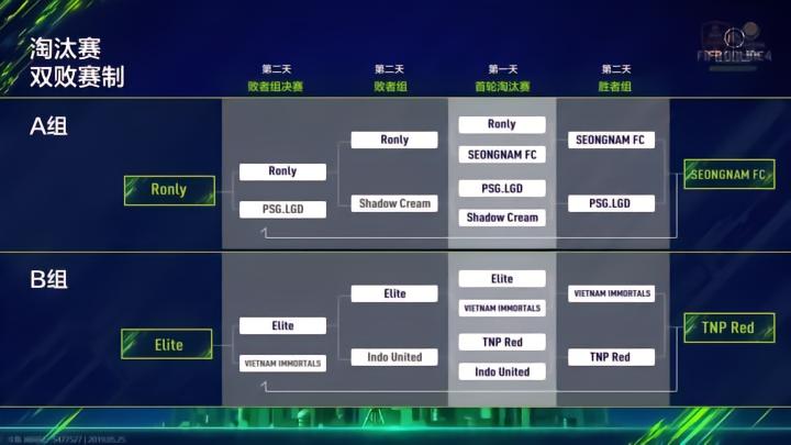 EA SPORTSEA冠军杯2019春季赛淘汰赛第二比赛日在昨天下午激情开战。经过6大局BO3比赛,中国Ronly、韩国Elite、泰国TNP Red与韩国SEONGNAM FC进入最终的半决赛。中国战队PSG.LGD与SC战队遗憾淘汰。