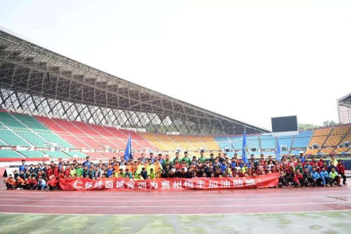 昨天,来自贵州恒丰足球俱乐部下属卫星足球俱乐部——仁怀绿茵城青训的百余名小球员来到了奥体中心,在参观球场后观看了贵州恒丰VS陕西大秦之水的比赛,也为场上的大哥哥们一直呐喊助威。