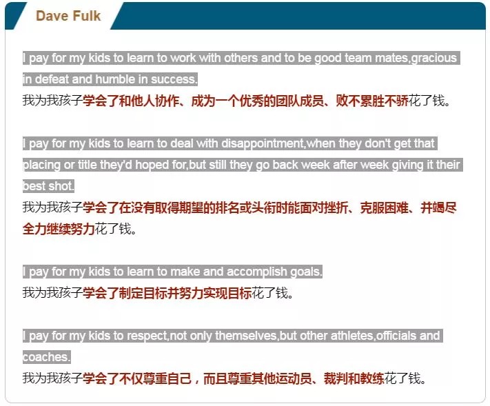 一位叫Dave Fulk的企业家在Linkdedin领英网络上发了一个帖子,解释为什么花那么多钱让孩子学各种体育项目。