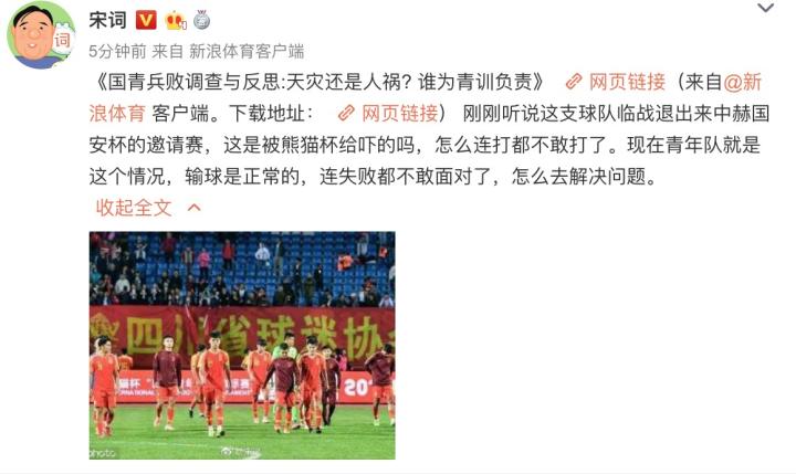 袁野表示:“刚刚听说这支球队临战退出来中赫国安杯的邀请赛,这是被熊猫杯给吓的吗,怎么连打都不敢打了。现在青年队就是这个情况,输球是正常的,连失败都不敢面对了,怎么去解决问题。”