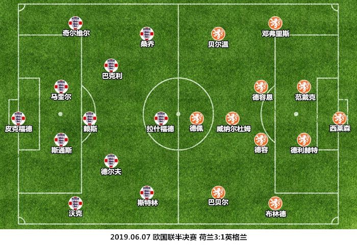 罗纳德-科曼本场排出的首发阵容是两个月前欧预赛对阵德国时的原班人马,刚刚参加完欧冠决赛的范戴克和威纳尔杜姆出现在首发阵容中,在他们身前的三叉戟由德佩、巴贝尔和贝尔温组成。英格兰的首发阵型和人员存在着很大的变数,索斯盖特在备战阶段的工作比较复杂,他一方面要仔细考察来自欧冠和欧联决赛参赛队的球员身体状态,一方面还要在三中卫和四后卫体系中选择合适的首发阵型蓝本。