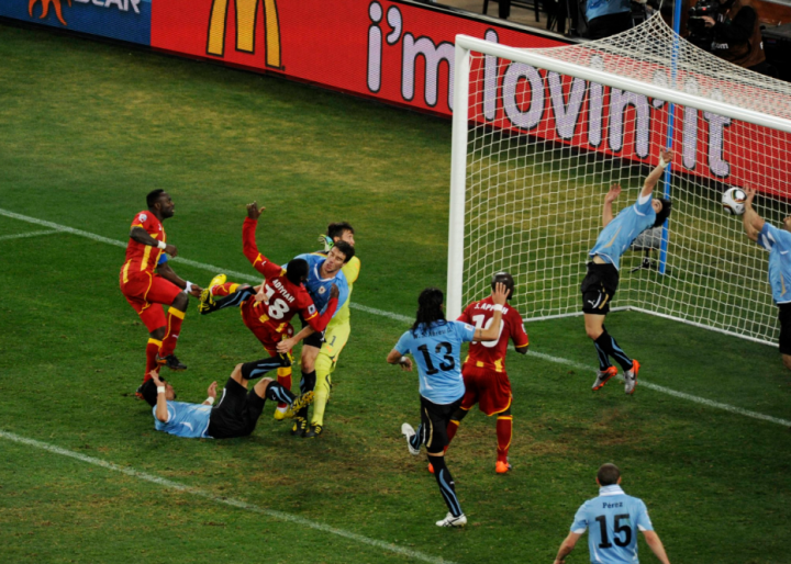 3.队员(包括守门员)手或臂部触球后直接形成了进球得分,即使是意外手球。