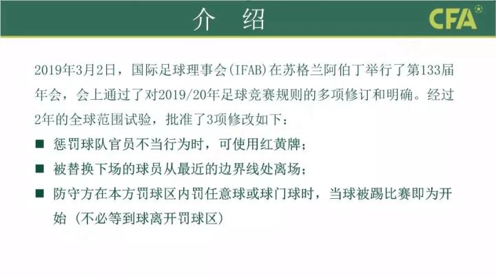 2019/2020足球竞赛规则改变,6月13日正式执行 一刻足球 2019-06-12 09:17国际足球理事会足球竞赛规则2019/2020已经发布。中国足协将于2019年6月13日开始执行新规则。展开更多