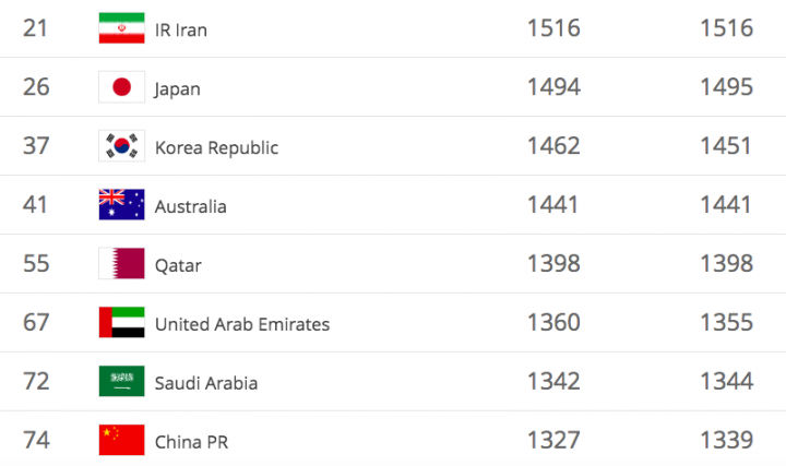 第一档位:伊朗、日本、韩国、澳大利亚、卡塔尔、阿联酋、沙特阿拉伯、中国