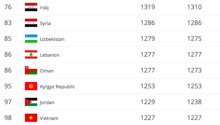 第二档位:伊拉克、叙利亚、乌兹别克斯坦、黎巴嫩、阿曼、吉尔吉斯斯坦、约旦、越南