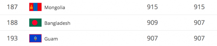 同时,在这个国际比赛日,世界杯预选赛亚洲区第一轮也展开了较量(四十强赛是第二轮),最终马来西亚、关岛、斯里兰卡、孟加拉国、柬埔寨和蒙古战胜了各自的对手,成功杀入了四十强赛。因为世界杯预选赛的比赛重要程度是25,所以其中几支球队的积分也在比赛之后有一个质的飞跃。在这次国际比赛日之后,马来西亚的1008分已经超过了排名亚洲第32的印度尼西亚,来到了第四档位。然而印度尼西亚还有一场和瓦努阿图的友谊赛。如果印尼获胜,那么积分回回到第四档位。而以印尼的实力获得胜利应该是问题不大的。所以我们仍然把印尼算在第四档位之内。