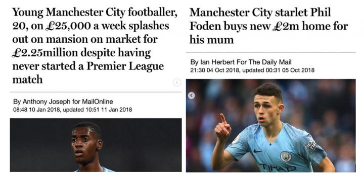《每日邮报》两则新闻关注的恰好是两位不同种族的球员几乎完全一样的行为,但是报道倾向性却几乎完全相反(图片来源:斯特林个人ins账号推文截图)