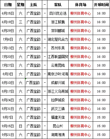 广西宝韵主场赛程表