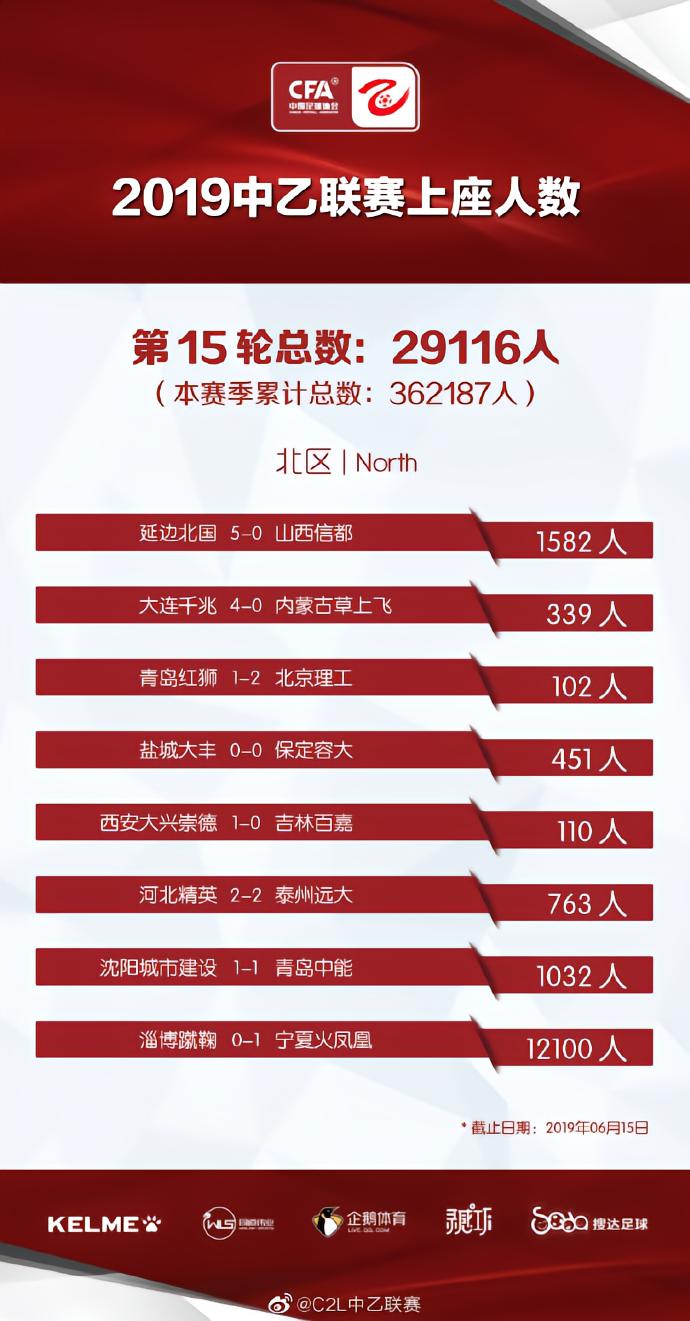 2019中乙联赛 | 赛果&上座人数(第15轮)