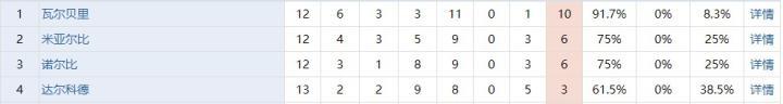 在查看瑞典超信息是,我们顺道看了北单开售的瑞典甲赛事,并发现了一支赢盘能力超强的球队:瓦尔贝里。瓦尔贝里目前位居瑞典超第1位,12场比赛10胜2平保持不败,赢盘概率高达91.7%,堪称超级盘王。除了瓦尔贝里之外,米亚尔比、诺尔比和达尔科德也有非常不错的赢盘率,平时喜欢玩北单的朋友,不妨关注一下这几支球队。