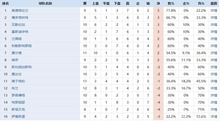 挪超联赛是竞彩在五大联赛休赛期间的主力赛事之一,作为北欧赛区传统赛事,挪超很好的弥补了五大联赛间歇期的空档,较为受欢迎。由于竞彩开售挪超赛事已经有很长一段时间,所以其中的球队历史,比赛数据等信息已经被广大投注者挖掘出不少。所谓知己知彼,百战不殆,有了更深入的了解,多少会减少我们分析比赛的难度。本赛季挪超的盘路相对稳定,有6支球队总体赢盘率在60%以上,有8支球队赢盘率超过一半,盘路走势排名第1位的奥德格伦兰甚至有77.8%的赢盘率,相对那些盘路波动剧烈的联赛,挪超的分析难度会稍小一些。