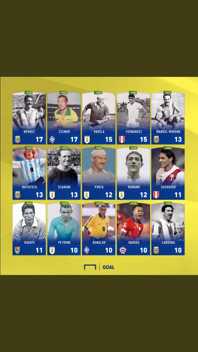 很长一段时间内,巴西并不特别重视美洲杯这项荣誉,他们只赢得过8次冠军,落后于乌拉圭(15次)和阿根廷(14次),其中5次是在1989年之后。因此,贝利虽然有三届世界杯冠军加身,但他只在1959年参加过一次美洲杯。
