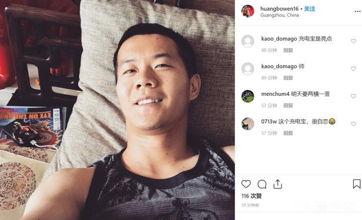 黄博文日前更新了自己的Instagram,有网友发现他的充电宝采用了自己的进球庆祝图片作为装饰,极具个人特色。