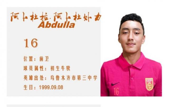 阿卜杜拉·阿卜杜外力,于1999年9月8日出生在新疆乌鲁木齐,籍贯新疆喀什。