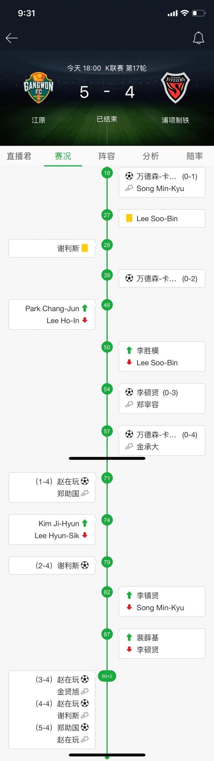 在此前结束的K联赛第17轮一场对阵中发生了一场惊天大逆转,主场作战的江原原本2-4落后,最终在补时阶段连续打进3球,以5-4击败浦项制铁。