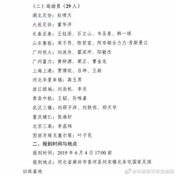 中国U14男足优秀球员(2005年龄段)第四期集训将在6月17日至7月7日举行,球队将参加2019武汉国际少年足球邀请赛。