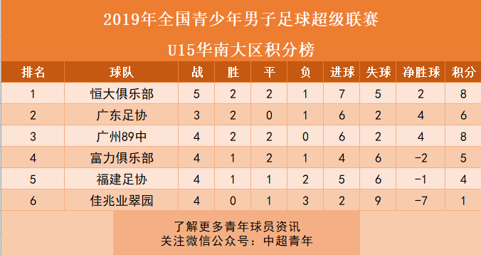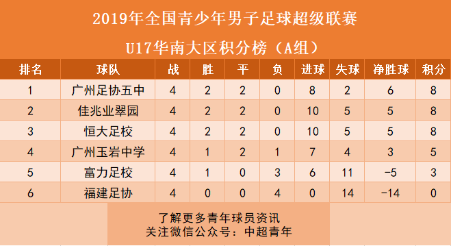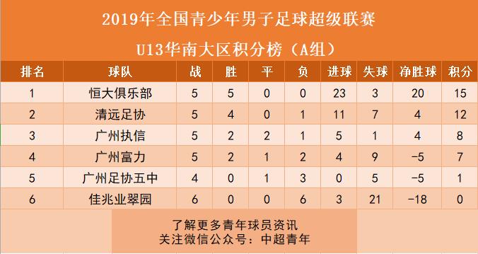 八、青超联赛华南大区:恒大U13领跑积分榜。