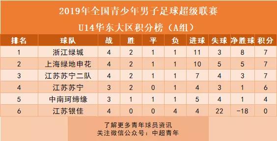U17联赛A组积分榜: