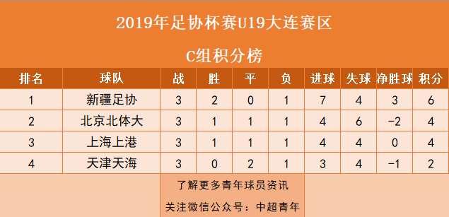 五、U19足协杯第一阶段:恒大、山东、大连、新疆全胜,上港出局。
