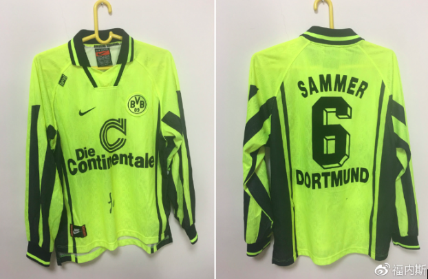 刚刚认识多特蒙德的时候站在场边的教练叫做萨默尔,这个让多特蒙德球迷又爱又恨的名字,在多特蒙德的历史上他不仅以球员的身份捧起过大耳朵杯和沙拉盘。2002年又是他作为教练带领多特蒙德拿下了危机之前的最后一个沙拉盘。但也是他后来出走拜仁,成为了击败多特蒙德的人。但是对于他,我始终只有尊敬,因为正是他让我喜欢上了多特蒙德,那时的我虽然并不知道战术和阵型,但是看着黄色的球衣在球场上飞奔,就十分的满足。而这件96/97赛季的萨默尔的球衣,就像是我多特蒙德的初恋。