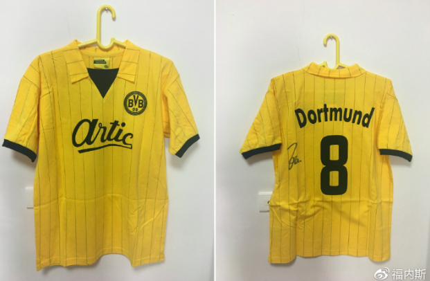 长情的人总是容易被人遗忘,他们或许并不起眼,他们或许不能卖出惊世骇俗的高价,但是他们却能用自己最宝贵的年华来证明对俱乐部的爱。多特蒙德不乏有过客,但是仍然有坚守。从现在的体育总监佐尔克,他一辈子只效力过多特蒙德,为多特蒙德出战463场德甲也是前无古人,退役之后的他在体育总监的岗位上为多特蒙德继续发光发热。在多特蒙德官网推出了复古球衣以后,我选择了1985/86赛季的球衣和佐尔克的8号,在中国行的时候我也拜托佐尔克在他自己的球衣上签名。