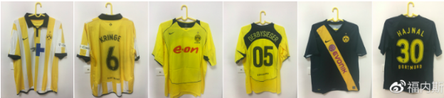 不知道还有没有球迷记得多特蒙德在国内曾经被叫做“黄金军团”,不仅仅是因为球衣的颜色,更是因为在02年三人组流行的时候多特蒙德也曾经有过叱咤风云的三人组合——罗西基、扬科勒和阿莫鲁索。这三个人花费了多特蒙德一亿马克,那时候还不会上网的我只能一次次守在电视机前等待着回放,想要一遍遍的看清楚罗西基的过人,阿莫鲁索的过人和扬科勒的做球,然后放学后在操场上一遍遍的练习。也正是这一亿马克的三叉戟,给多特蒙德带来了辉煌,但是可惜的是辉煌犹如泡沫一般,便随着多特蒙德一起苦苦挣扎。我特意选择了01/02、02/03、03/04的三叉戟的球衣,这也是我们儿时最美好的记忆。