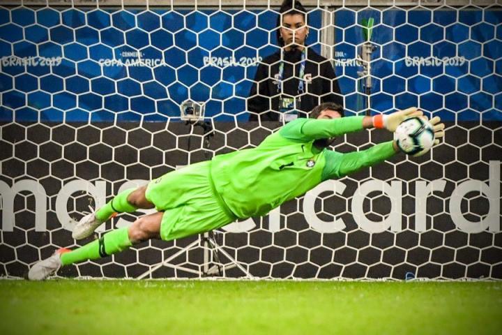 今晨,阿利松在美洲杯1/4决赛也经受的重大考验,他成为国际足联新规则实施之后巴西国家队历史上第一个站在大赛点球大战门线上的巴西国门。而塔法雷尔退役后,巴西虽然冒出众多门神,可以说世界级好门将层出不穷,但是能够在点球大战发挥神奇表演的人还真的难觅。欧冠冠军门将阿利松今晨终于站了出来。