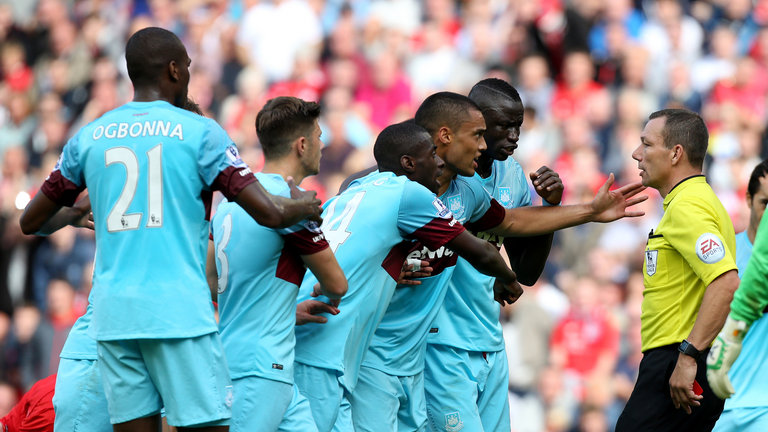 (图)诺贝尔的红牌撤销,但西汉姆却因为球员围住弗兰德而被处罚通报