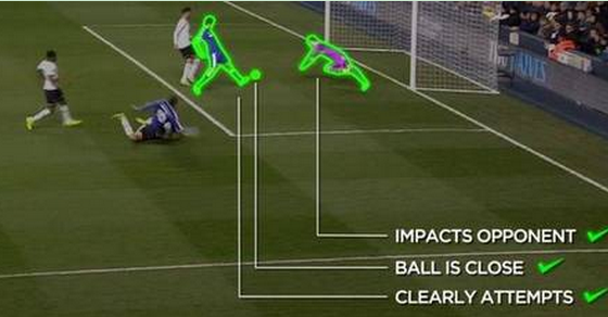 与特里的犯规一个性质,只不过动作发生在禁区内,且更为明显。