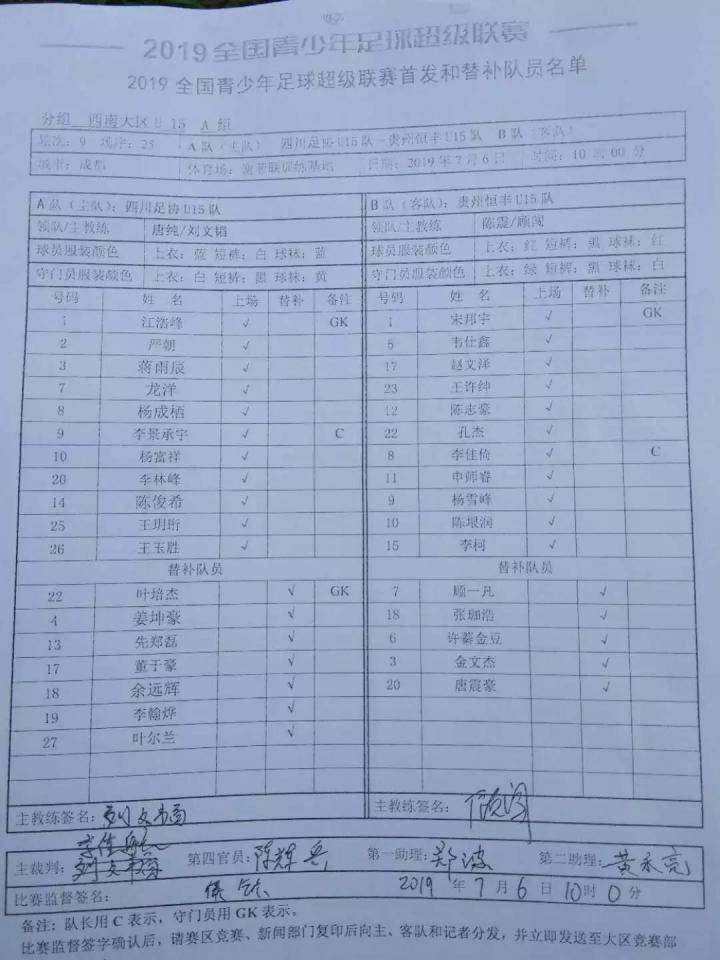 2019全国青少年足球超级联赛U15组第九轮,贵州恒丰客场对阵四川足协。
