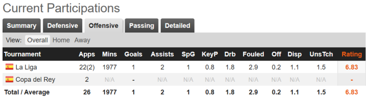 值得一提的是,特奥带球时有些习惯低着头,这也对他最后一传的视野有一定影响。特奥的攻门和任意球能力不错,曾经在国王杯决赛弧线任意球攻破巴萨球门,射门势大力沉,不过他近两年在得分方面贡献不多。在这方面,年轻的法国人还有待开发。