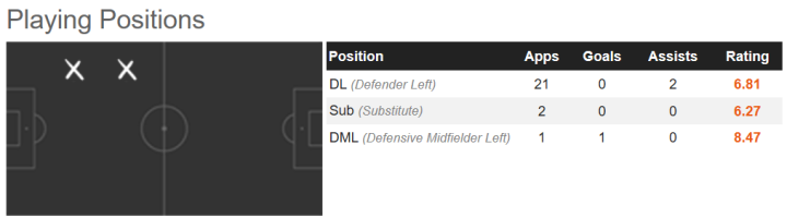 特奥在防守端也能利用自己出色的身体素质给球队带来贡献,法国人属于攻击型边后卫,因此他的防守位置感较为一般,时常会出现失位的情况,不过他还是能利用出色的爆发力和速度来完成回追。特奥喜欢利用自己的铲球来防守,他的大长腿有拦截优势,不过技巧还需提升,要避免不必要的犯规。