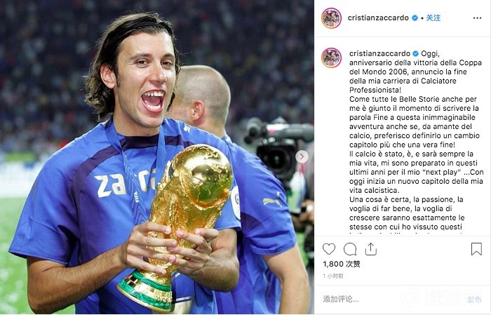 扎卡尔多宣布退役,曾随意大利夺得2006年世界杯