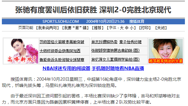 2004年10月20日,中超联赛第16轮北京国安客场0-2不敌深圳。