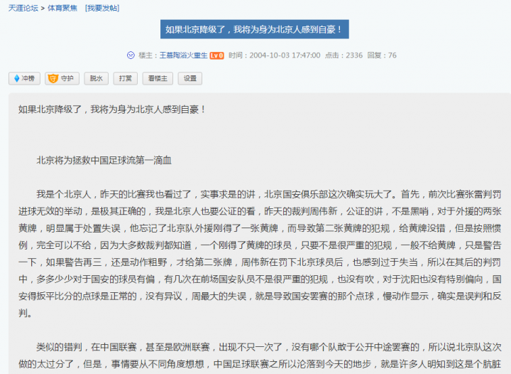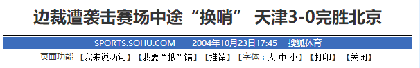 2004年10月23日,中超联赛第17轮北京国安客场0-3不敌天津。