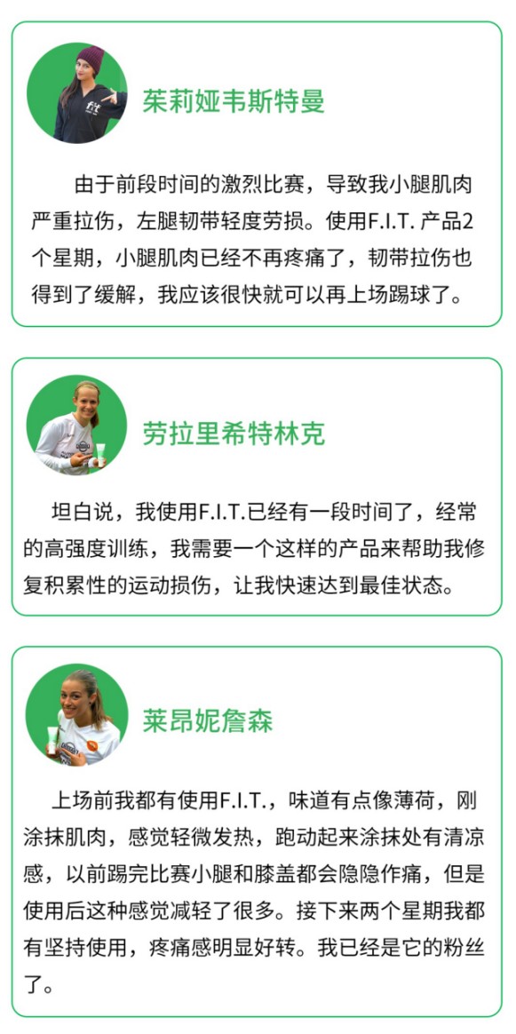 这次受F.I.T.国际的邀请,全队为F.I.T.运动激活防护膏这款产品做使用测评。当时我们都很惊讶。因为它在欧洲如此知名,以至于我们很多俱乐部早已开始使用它了。