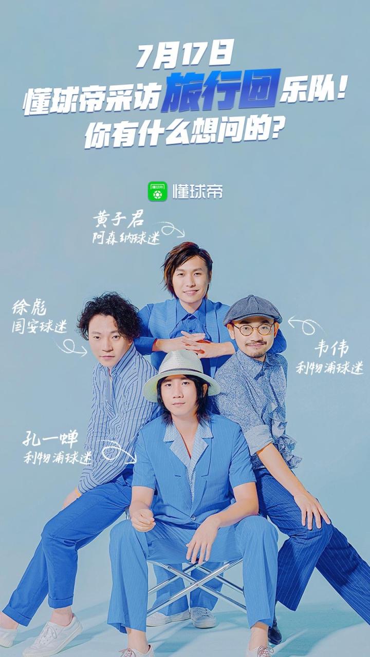 懂球帝在7月17日(下周三)将采访《乐队的夏天》的人气乐队@旅行团乐队 自2005年成立乐队以来,旅行团已然成为了中国摇滚界的中坚力量,而作为一支摇滚乐队,团员中也不乏有足球迷啊,7月17号,懂球帝将采访旅行团乐队,对于这支乐队和其成员你都有什么想问的?在评论区留下你的问题,我们会从中挑选一些向旅行团乐队提问哦~同时在文章下评论+转发,也有机会获得旅行团乐队的亲笔签名照!