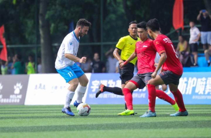 比赛刚开场第4分钟,华中科技大学发动攻势,南加大后卫解围失误,华中科大8号孙志豪得球后中路远射,球稍稍高出横梁。